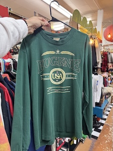 Description: Vintage Eugene, USA long sleeve green t-shirt. Size Large