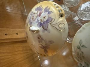 Antique dish with painted flowers