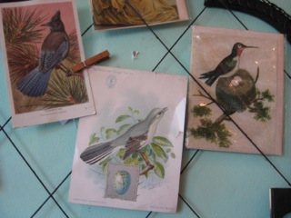 Flocks of birds and stationery nest in a wire wall hanging at Stars Too. Who knows how many varieties you'll see while camping!