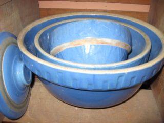 Everything looks and tastes better prepared and served in vintage bowls. Dealer #27 has this nice set of royal blue bowls awaiting purchase.
