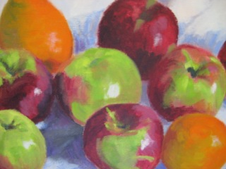Ripe and ready; this still life on canvas looks good enough to eat. Complete with a simple frame this painting is available at Stars Too!