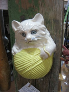 Vintage wall pockets are still a great and affordable collectible. Dealer #27 has this white kitten playing with a ball of yarn hanging in their space.