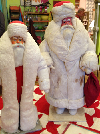 We found these vintage Santas very appealing. According to the price tag, they are Russian. OK but they sure have a great vintage look. Russian or not they would be a fabulous addition to any Santa collection.