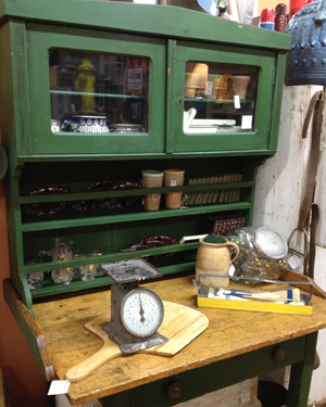 Pretty much any color is a favorite of ours but this green cupboard just spoke to us this week. Dealer 99 has been on a shopping trip to Southern California so we suspect that this is one of his finds. Priced at $450, this cupboard top sits on a table base. So you can use them together of split them up.