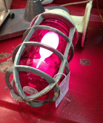 We were drawn to the industrial light. Was it the red bulb? Who knows. Check out all the chic industrial lighting in Dealer 41's space.