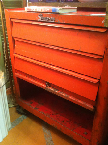 Dealer 41 has the best selection of industrial furnishings in the two stores. And her prices can not be beat. This red cart is a good example. She has it priced at $238. It would be twice that price at any other shop.