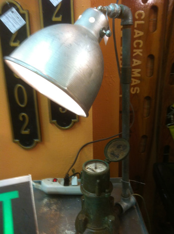Besides having an amazing selection of industrial furnishings, Dealer 41 also has some amazing lights made out of found objects. We love this water meter light. It's priced at $189