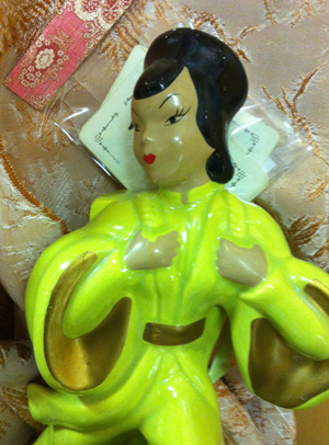 We must be on a color trip on this Let's Shop shopping trip. So many of the things we are being draw too are colorful. Could that be because of all the rain and gray weather we have had this year? U Betcha!!!! So we love this Asian lady from Dealer 38. And it is probably the color that does it for us.