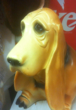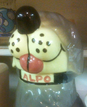 With an dog collar that reads Alpo, you pretty much know what this kind of dog is. A chowhound. Funny thing, we think this doggie is really a cookie jar.