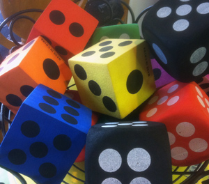 Anything with bright colors and we are there to take a look. We spotted this basket of colors dice in Dealer 42's space at Stars. She has them priced at $14.50 for them all