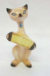 This musical cat is waiting to be adopted. Only good homes need apply. For $13.50 this cat with an accordion could be on your shelf soon. Check out Dealer 116 for this crazy cat.