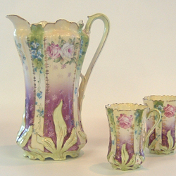 What a lovely way to drink our chocolate. This set is really quite handsome with the china painted pot and 6 matching cups. Priced at the lovely sum of $150.00 for the set.
