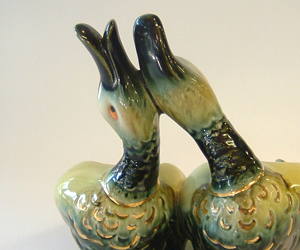 Your Let's Shop shopper took a liking to what we found in Dealer #127's booth at Stars. And the prices are so good we couldn't pass up the opportunity to hoot about them. So Let's Shop with Dealer 127. These ducks look in love to us and they are a planter besides. What a bonus. Duck love and a plant. The Hull duck planter is priced at $24.50. We think is it something to quack about.