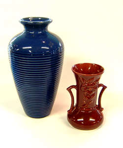 Oh we love pottery and here are two very nice examples of some of the pottery that Dealer #118 has in his booth space. The burgundy Camelia vase is $34.00 & the Hesley Blue rings vase is $68.00