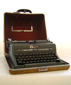 Yes, there are still some typewriters around in the world. In fact we are seeing more and more people collecting these babies. How much the world has changed since we had to use these machines to type our college term papers. This typerwriter and its case is priced at $20.00 from Dealer #99