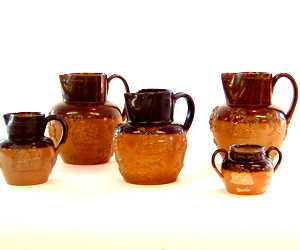 We thought these English pitchers were such an interesting group of pottery. They were made by V. Shiff and Sons in England, of course. Dealer #25 has them priced at $45.00 each.
