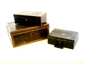 You may think these deed boxes are a strange choice by your Let's Shop shopper but we love them because you can store all sorts of treasures in them. And they look sooo good stacked up one on top of the other. In their form lives they held deeds and documents but we use them for just about everything and anything. This assortment from Dealer #99 range in price from $18.00 to $45.00