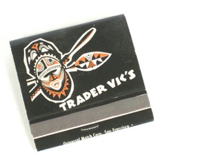 Oh the memories of eating at Trader Vic's that this matchbook brings back. Always ordered the pressed duck. How do you press a duck? Trader Vic knew how. This matchbook is priced at $5 by Dealer 112