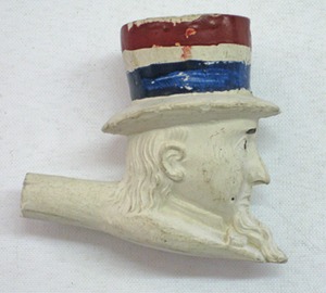 Dealer 25 has this Uncle Sam clay pipe in her showcase. The 4th and Uncle Same they are a couple really. The pipe is priced at $12.50