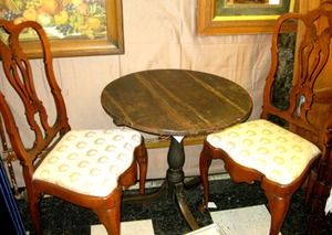 Dealer 72 is a collector with a marvelous eye. These 18th century chairs are an example of the collector's eye. She has them priced at $500 for the pair. They would be three times that back east. The table is also 18th century and priced at $350. Again a great price.