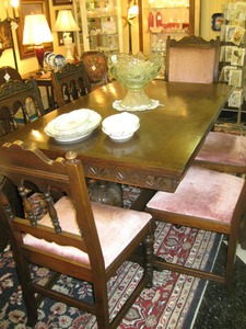 Are you looking for a dining room table and chairs? Look no further than Dealer 4's booth space at Splendid. This lovely set comes with two leaves and 6 chairs. They have it priced at $1595