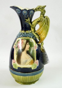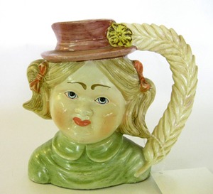 We have never seen anything like this little girl pitcher. A bit homely but we feel in love with her. Dealer 99 has three of these interesting pitchers in his back showcase. This one is priced at $27.