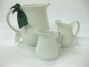 We love this grouping of white pitchers that Dealer 2 has in their space. Priced at $8 to $16, they are cheap enough to buy the whole group. But wait, they have a 20% off coupon you can use. By in groups became a whole lot cheaper.