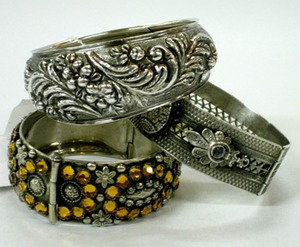 Never one to place up a look at jewelry we shopped in Dealer 72's new showcase filled with all kinds of treasures. Our keen eye spotted these bracelets. Dealer 72 has them priced at $35-55 each.