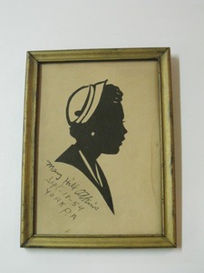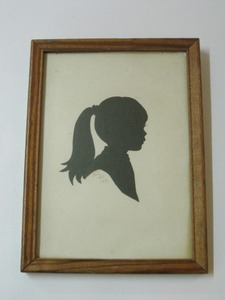 We think this is a classic silhouette. The profile, the cut, even the eyeglasses. This is what makes a silhouette. Our lady is priced at $32.00