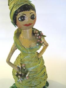This lady looks the part of Miss Charming or so we thought while we were shopping for our cluster of ladies. She is a Muriel of California creation and offered by our pottery dealer #118 at $43.00. Be charmed by her like we were.