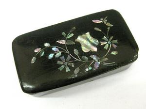 Those Victorians and their snuff. At least they did it in style. This mother of pearl inlayed snuff box is a beautiful example of Victoriana. Dealer 6 has is priced at $69.00