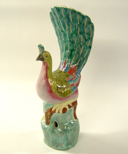 This peacock sure does and with style. Priced at $165.00, we are taken with this peacock's color and style. You will find it in Dealer 44's case.