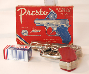 A genuine cap pistol with caps included. Great for playing cowboys or just putting in a cabinet for nostalgia...