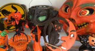 Dealer #70 has vintage collectibles for All Saint's Eve spilling over out of his case!