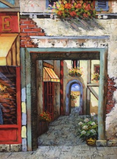 Dealer #29 has this view down the corridor of narrow streets in the Mediterranean tempting us to further our journey. But reality is calling, and we must return home.