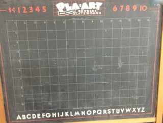 The chalkboard may be a thing of the past with technology! Dealer #46 has a vintage board available with everything you need for notes and homework.