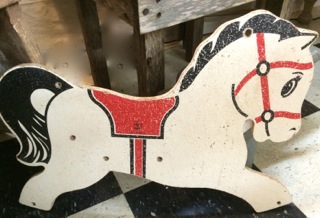 Leave the wooden horse inside and go for a horseback ride at the beach!! Vintage wooden cut-out from Dealer #46.