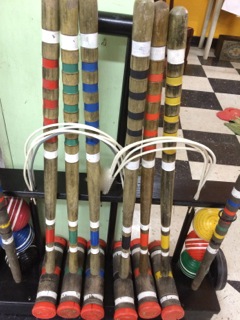 Dealer #69 has a window filled with pillows, flags, stoops and more celebrating the colors of the American flag.