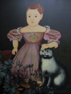 I've written before of the magic of our animals; today on a more poignant note as we grieve the loss of one of our three beloved dogs. Animals have found a well deserved place by our sides all throughout time. Here a lovely painting of a young girl and her cat from Dealer #62.