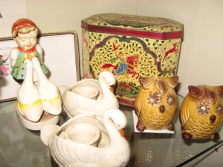 Porcelain figurines take all shapes and sizes in the glass case of Dealer #71.