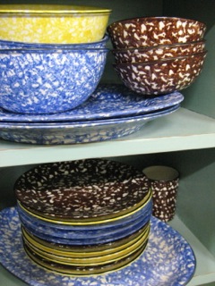 Blues, yellows and browns intermix nicely with this collection of Stangl Town and Country service from Dealer #118. Be bold and intermix the plates with the luncheon set that follows!