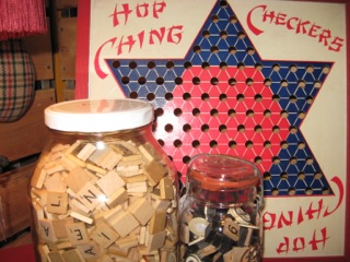 Recycle your jars to store Scrabble and other game pieces so they're in view and ready to go! Don't forget the marbles for the Chinese checker board, Dealer #31 has plenty to choose from, including the gallon jar of Scrabble to be played sans board!