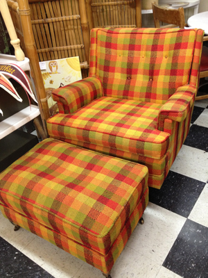 You might want to sit in this cool retro plaid chair. You never know what you might find?