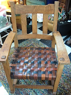 I love the notion of repurposing and recycling, so imagine having this great rocker of salvaged leather belts in front of a warm fire while snowed in!! There are also two matching side chairs, all available from Dealer #31 at Stars and Splendid