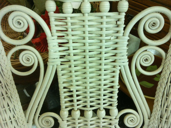 Sit on the porch, sipping a tall cool drink and rocking in your white wicker rocker. Now isn't that summer? Dealer 92 has this lovely wicker rocker. Why don't you come and sit for awhile.