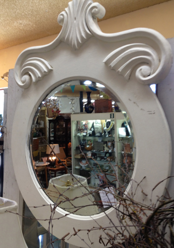 This white frame could go just about anywhere in your home. We love it. Check it out in Dealer 17's space.