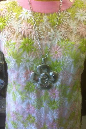 This little number of a dress is from Dealer 43. She has it priced at only $34.50 but it was the Trifari necklace that caught our shopping eye. It is priced at $34.50 also.