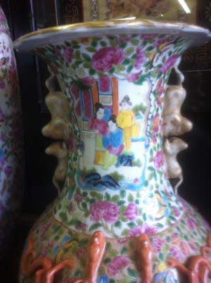 This pair of Rose Medallion vases are spectacular. Dealer 44 once again has an exquisite collection of Asian pottery in both his case and space at Splendid. This pair is priced at $2475.
