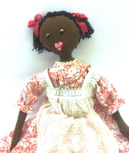 That's her name and we love her. Dealer 27 is one creative person with vintage fabric. Annie is just one of the many items created from vintage fabric. Annie is made from vintage curtain material, a feed sack and a dresser scarf. And she is adorable to boot. Annie is priced at $85.00